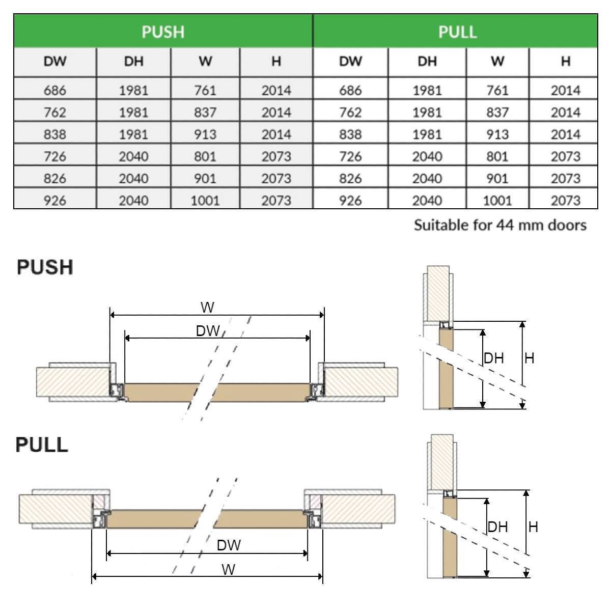 - Comes with an aluminium frame that allows the door to be installed 4 ways: push right, pull left, push left and pull right