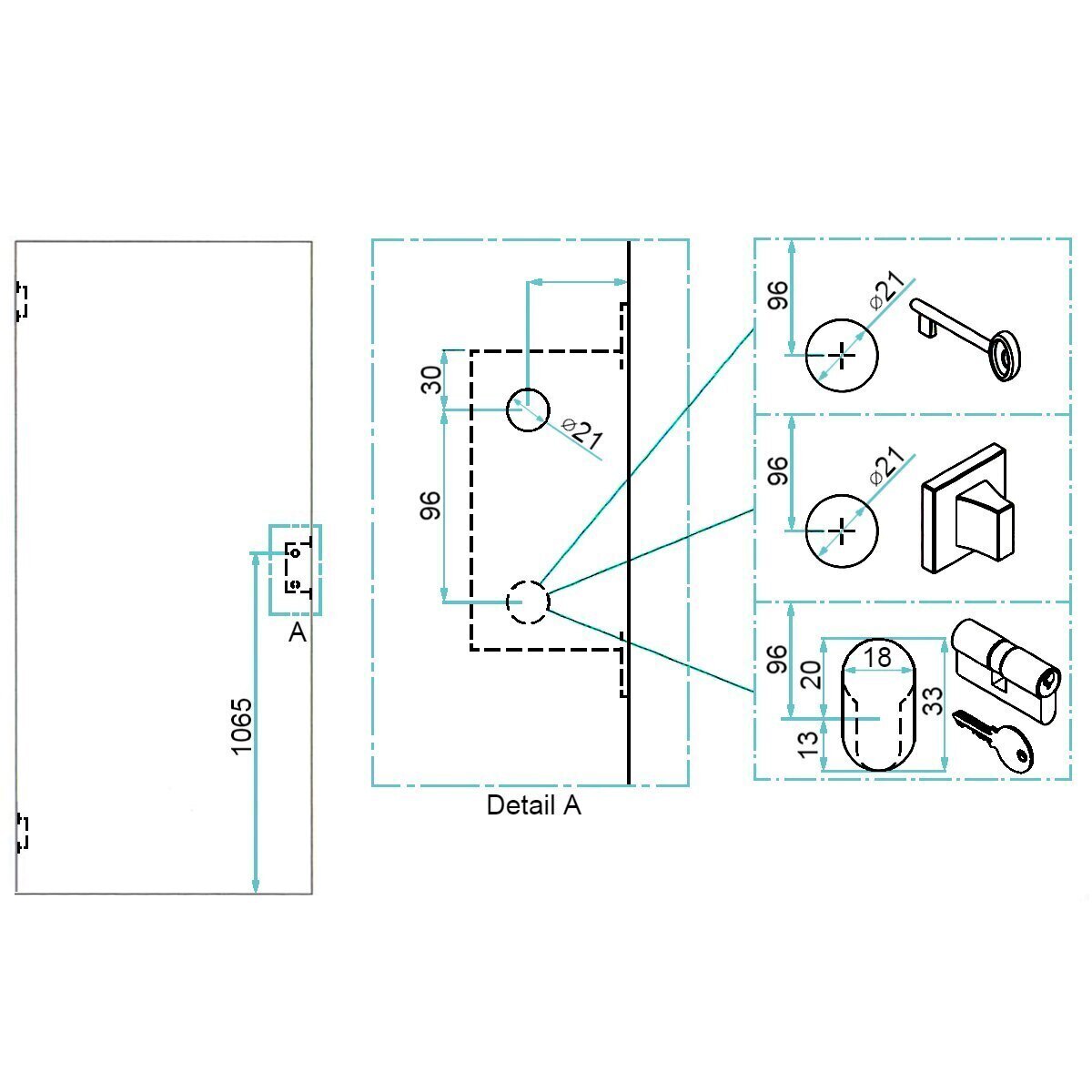 - Supplied with magnetic latch, bumper seals, hinges, hinge cover plates and strike plate