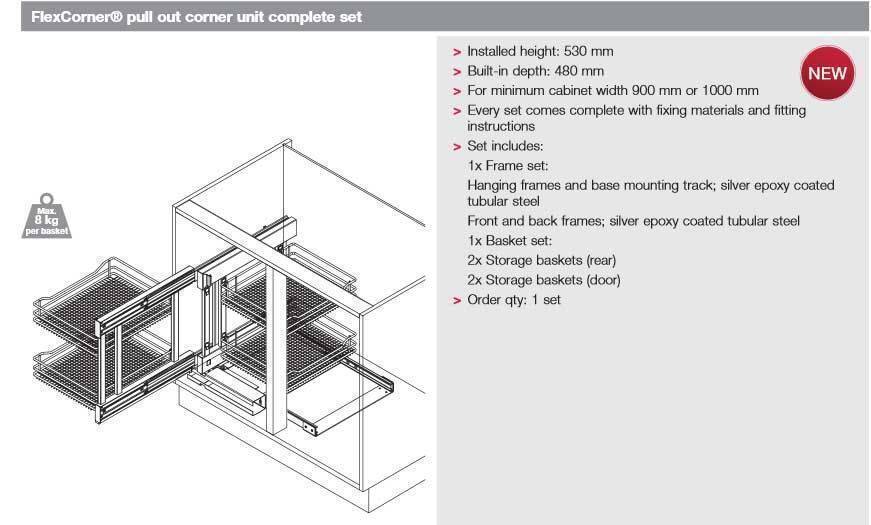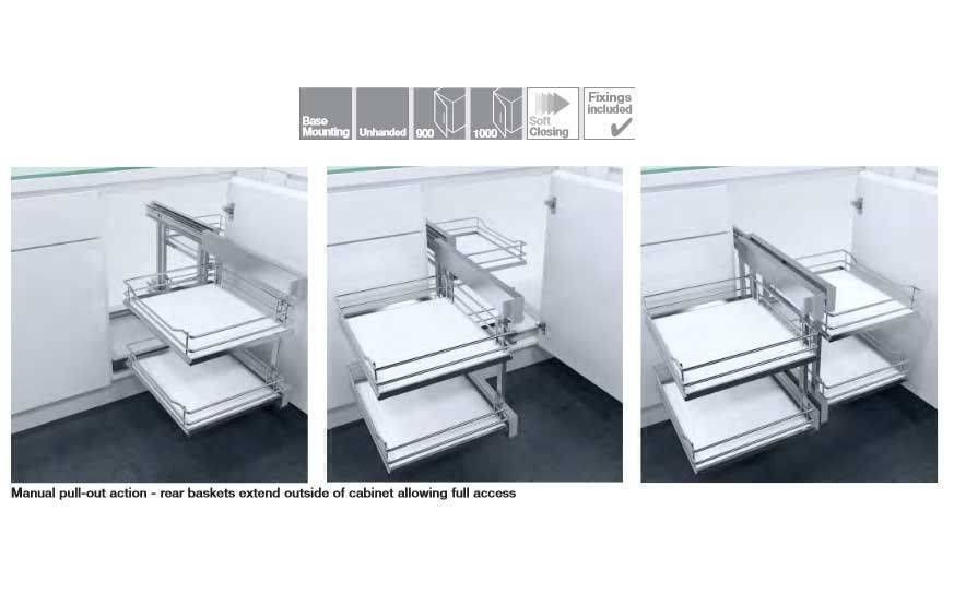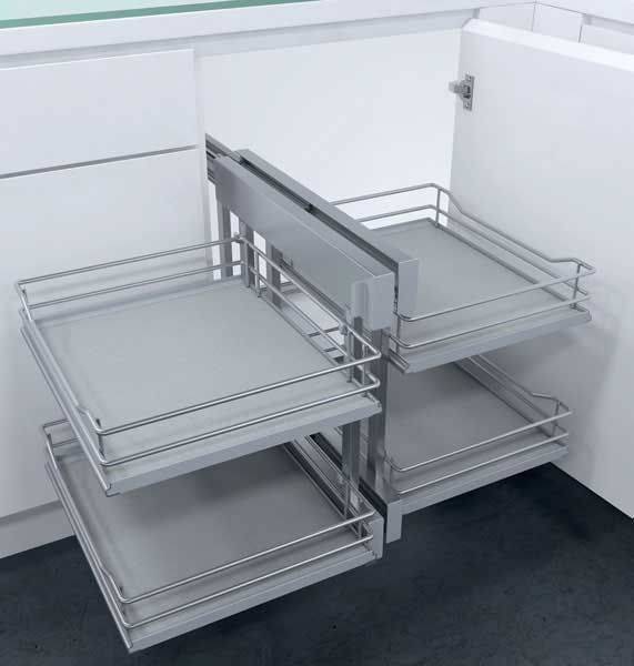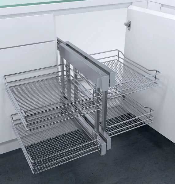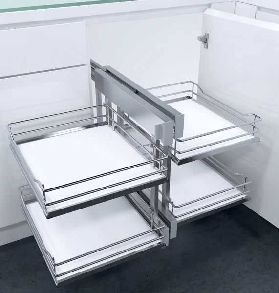 This innovative corner storage solution optimizes space utilization and accessibility in kitchen cabinets. Whether you’re organizing pots, pans, or other kitchen essentials, the Vauth Sagel Corner Flex swing out is a smart choice for efficient storage.