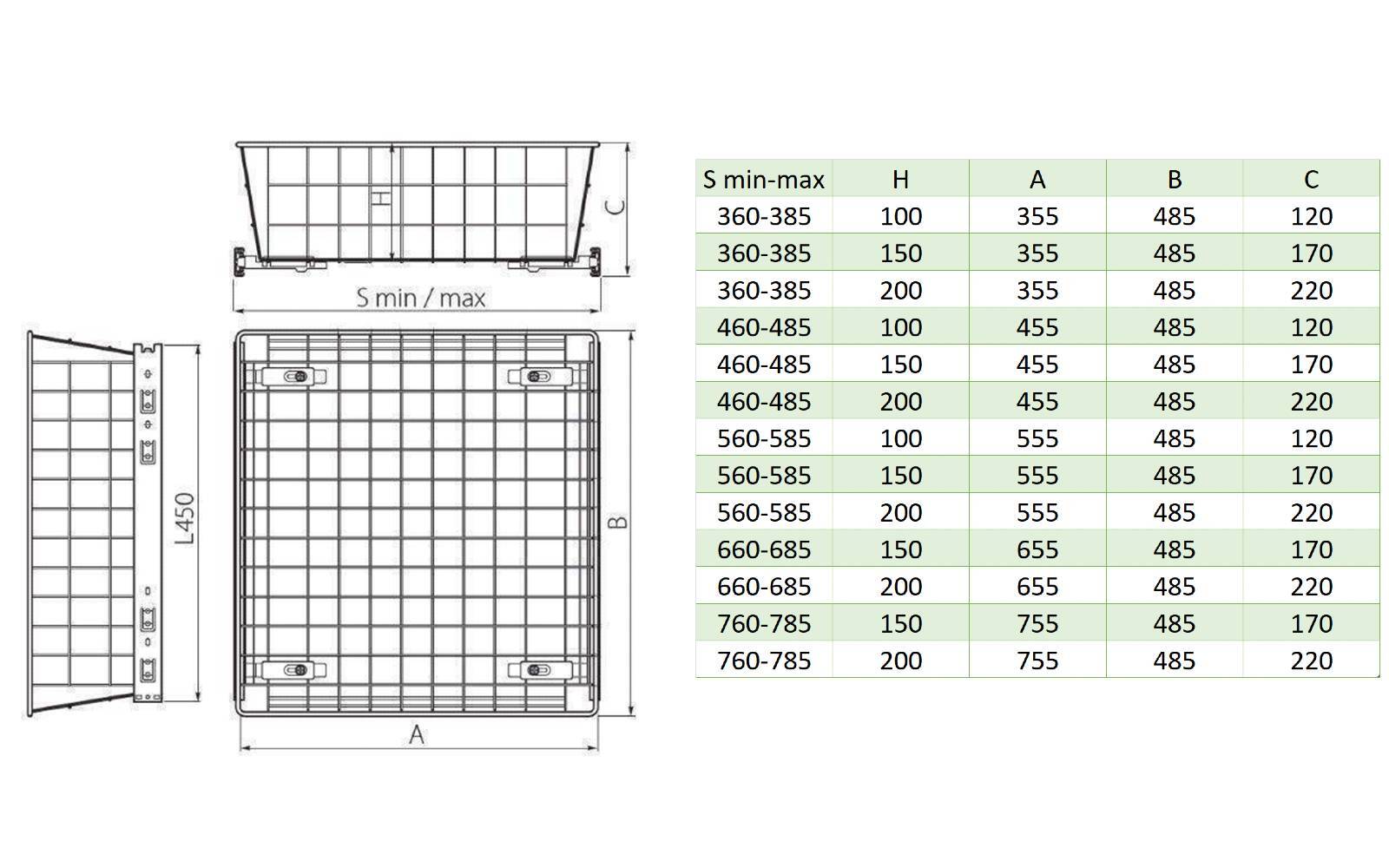 - Supplied with 45mm/450mm full-extension ball-bearing runners