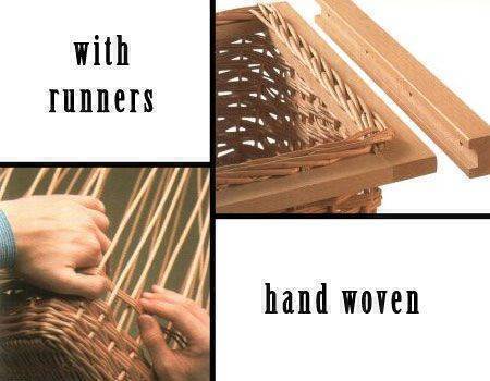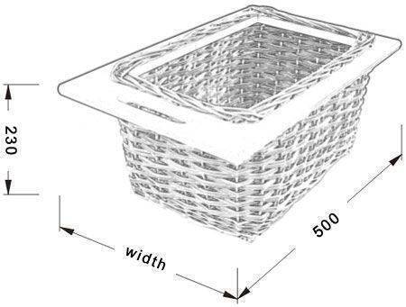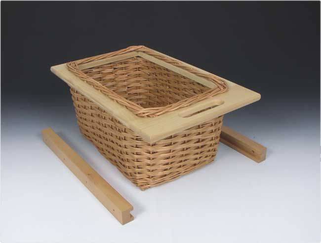 Natural wicker basket pull-out drawers not only make an attractive feature but are extremely practical for the storage of fruit and vegetables. Due to their design, the air is able to circulate, therefore preserving the life of fresh produce. Sizes to fit 400mm 500mm 600mm base kitchen units.